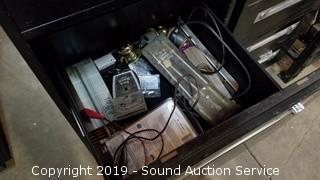 This auction consists of several consignments; New Tools (Bits, Tool Sets, Wrenches, Sockets & More), Sliding Compound Miter Saw, Air Compressors, Heavy Duty Utility Shelves, Shop Work Benches, Fine China Hutches, Utility Tables, Vtg. Portable Record Player, Italsofa Leather Arm Chairs, Razor Elec. Mini Bike, Smoker, Cement Mixer, Lifetime Folding Chairs, Portable Toilet, Survival Food, Golf Club Sets, Nintendo Game System w/Games, Atari Game System & Much More!!!