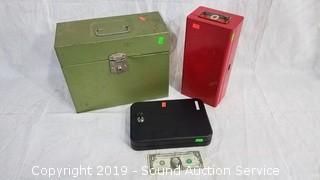 Item Description: One looks like a pistol case with key. One is combination, has combination. Approx. 9-1/2" x 6-1/2" x 1-3/4", 11-1/2" x 3-1/2" x 5-1/2", and 10" x 12-1/2" x 5-1/2".