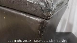 Item Description: Some wear to the upholstery, peeling / flaking in spots. Approx. 16" H x 13-1/2" x 13-1/2".