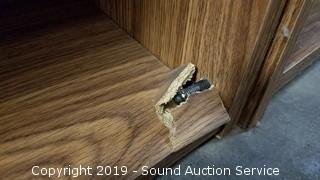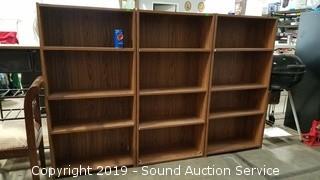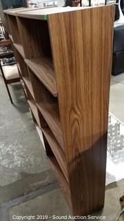 Item Description: The bottom shelf on one has damage, refer to photos. Each one is approx. 48" H, 24" W, 9.5" D.