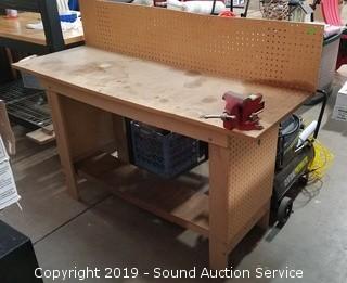 Lot #0395: Shop Bench w/Peg Board & Vise