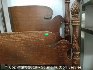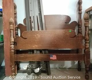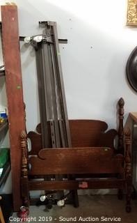 Lot #0202: Vtg. Twin Wood Bed Frame & Adjustable Metal Frame