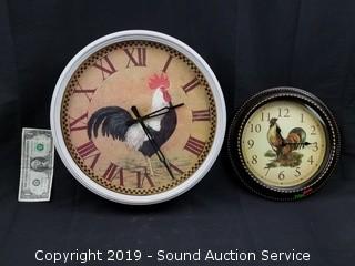 Lot #0367: 2 Quartz Rooster Clocks - 10" & 14"