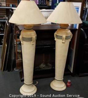 Lot #0009: 2 Tall Ceramic Floor Lamps