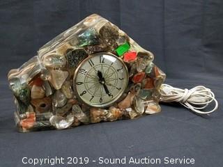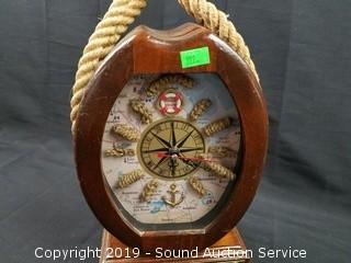 Item Description: All have quartz movement. One doesn't work, battery was corroded. Other two work. Includes shell and stone epoxy frame, nautical rope knot theme (some of the outer rope has come free). Approx. 6" to 16" tall, 7" to 10" wide.