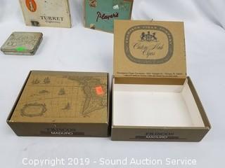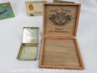 Lot #0404: 7 Vtg. Cigarette Tins & Cigar Boxes