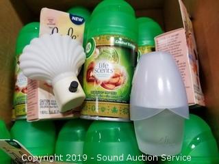 Item Description: Includes 18 Air Wick "Trimming the Tree" scent air fresheners and 5 Glade Plug In scent refills with plug in.