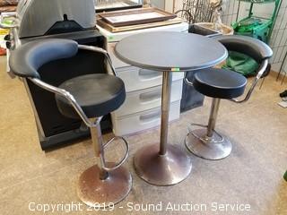 Lot #0208: Black & Chrome Cafe Table w/ Adjustable Chairs