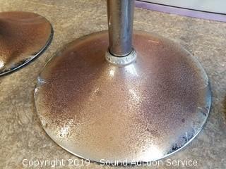 Item Description: Looks like its been outside, has been rusted. Table is leather wrapped. Chairs are adjustable height. Table is 36" T x 24" diameter. Chairs have 23" to 33" high seats.