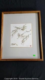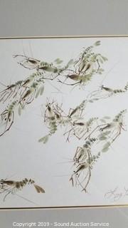 Item Description: Original is by artist Lucy Liu, images of shrimp. 9.5" x 10.5" image size, overall 17" x 21" with frame. Print is by Bernard Bradley Sedona, professionally framed and matted with glass. Image size is 10" x 8", overall 14" x 17".