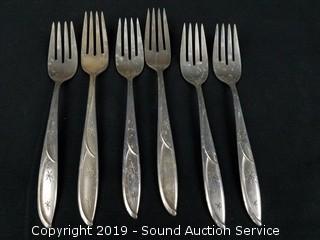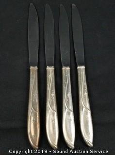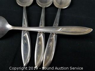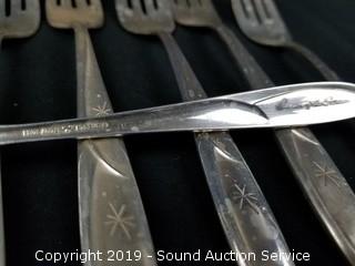 Item Description: TW: 389g not including the knives, only the handles on the knives are sterling. 4 spoons, 6 forks & 4 knives.