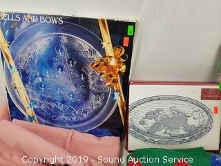 Item Description: Includes Pink table cloth and napkins, 58' x 96". Crystal and glass plates, doilies and placemats.