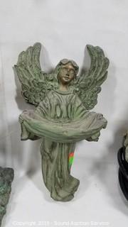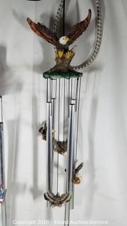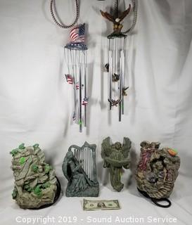 Item Description: Angel water fountain, chime, and wall decor, frog fountain, and American eagle wind chimes.