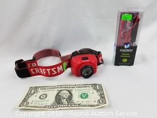Lot #0216: Craftsman LED Headlamp & Fuse Box Earphones
