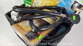 Item Description: Unknown completeness. Includes a 4 wire appliance cord, fill valve, toilet flappers, braided hoses, sink plumbing pipe & more.