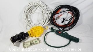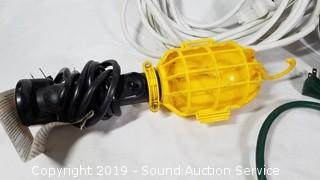 Lot #0327: Drop Light Extension Cords & Power Strip