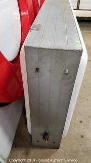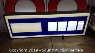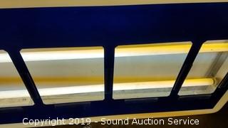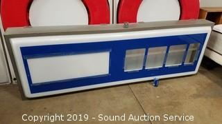 Item Description: Wired with a plug so can be used anywhere. Has places to slide in letters or sign. Holds (2) 14" x 35" & (6) 12" x 11, slide spots. Overall 32" x 97-1/2" x 12".