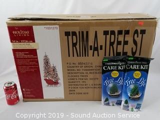 Lot #0229: NIB 54" Pre-Lit Trees w/Sleigh & 2 Tree Care Kits