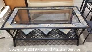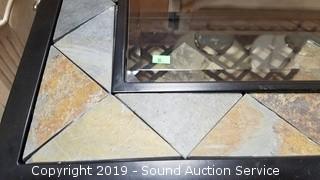 Lot #0030: Tile Inlaid Beveled Glass Top Cocktail Table