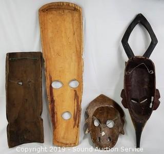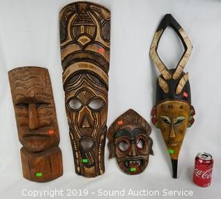 Lot #0260: 4 Hand Carved Wooden Tribal Mask Decor