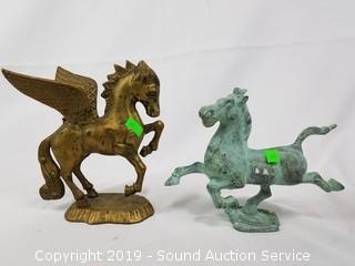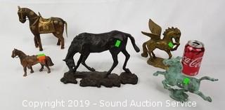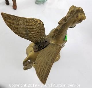 Item Description: Wood, brass, bronze finish resin, copper and cast iron. 5" to 8" tall. Wood one is adorned in ornate brass accents, made in India. Pegasus is also a table lighter, missing the wick and spark roller.