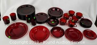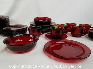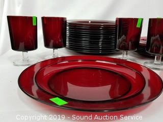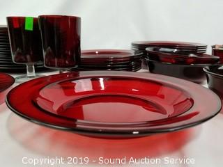 Lot #0150: 54pc Arcoroc France Ruby Glass Dish Set