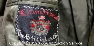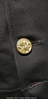 Item Description: By the B.R. Baker Co. Excellent condition, solid brass buttons. Approx. 18" shoulders, 29" under arm, 33" long.