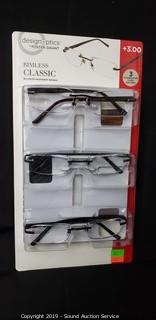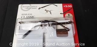 Lot #0352: Design Optics +3.0 Rimless Classic Reading Glasses
