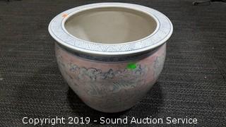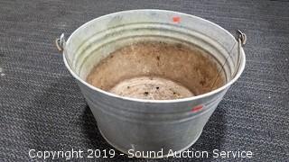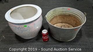 Lot #0203: Galvanized Pail Planter Pot & Ceramic Planter