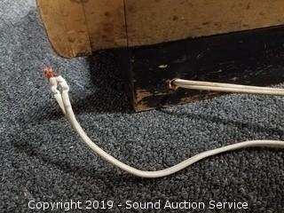 Item Description: Top glass has a crack on one corner. Some pant and wear to the wood finish, 3 adjustable glass shelves. Approx. 39" H x 22" x 15". Looks like it was wired at one point for lights.
