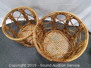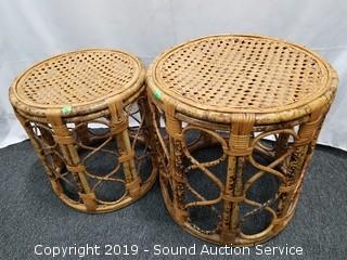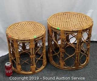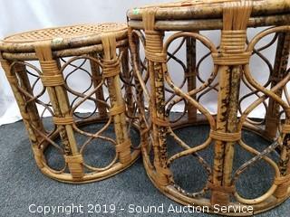 Lot #0008: Pair of Bamboo Woven Top Stools/Tables