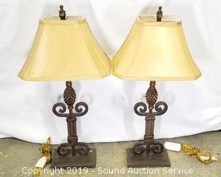 Lot #0327: Pair of Wrought Iron Decorative 26" Table Lamps