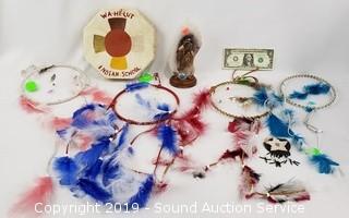 Lot #0025: Rawhide Drum, Dream Catchers & Soul Mates Figure