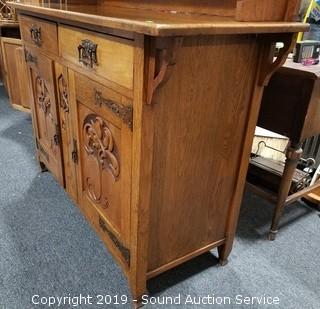 Lot #0006: Stunning Antique Quarter Sawn Oak Mirrored Buffet