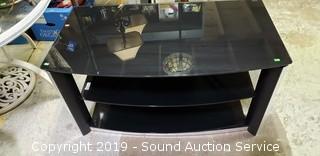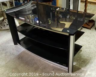 Lot #0399: Tempered Glass Modern 3-Tier Media Console
