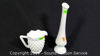 Lot #0164: 12pc Fenton & Other Hobnail Milk Glassware