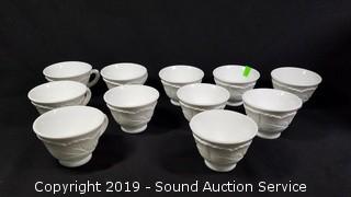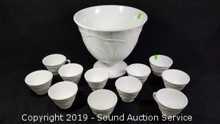 Lot #0161: 12pc Leaf Embossed Milk Glass Punch Bowl Set