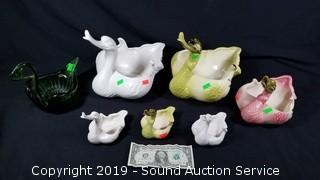 Lot #0157: 7 Ceramic & Glass Duck Dishes