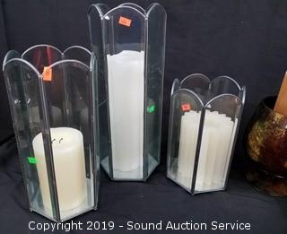 Lot #0109: Beveled Glass Graduating Candle Votives & Candles