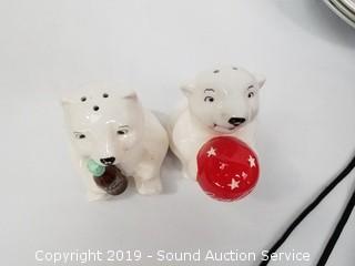 Item Description: Includes 4 plastic bowls, porcelain trinket box, porcelain polar bear salt and pepper shakers and 2 tins.