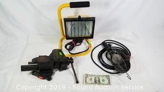 Lot #0175: Halogen Shop Light, Drop Light & Vise