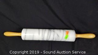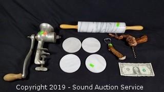 Lot #0147: Marble & Wood Kitchen Utensils & Meat Grinder