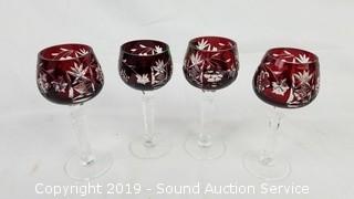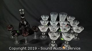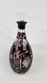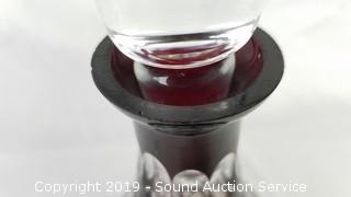 Lot #0284: Ruby Cut Crystal Decanter & Hawkes Stemware