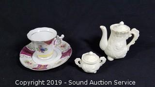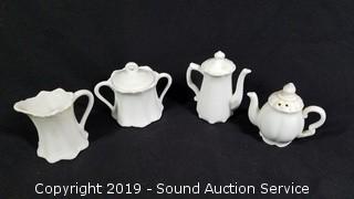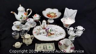 Item Description: Miniature tea sets, Royal Worchester porcelain egg coddlers, creamers, sugars, and more.