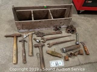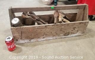 Lot #0081: Wooden Carpenter's Tool Tote w/ Vtg. Tools