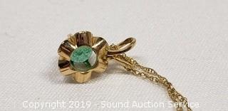 Item Description: Unsure if the chain is gold. Green Iolite setting. TW: 1.2g. ATTN: We are not jewelry experts or appraisers, please use your own judgement when bidding.