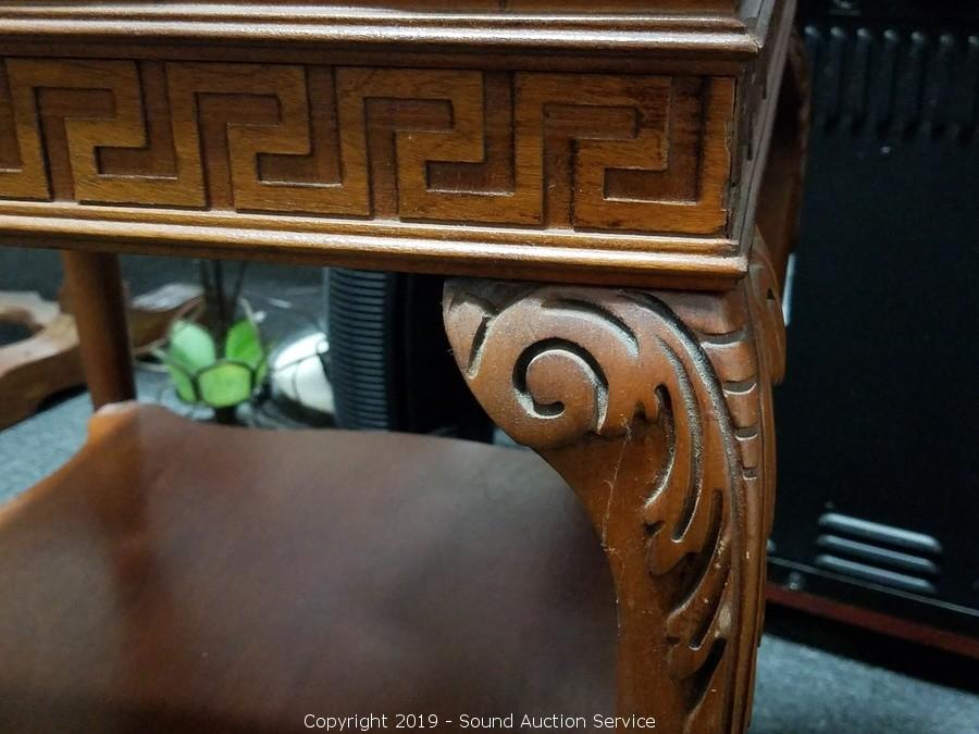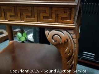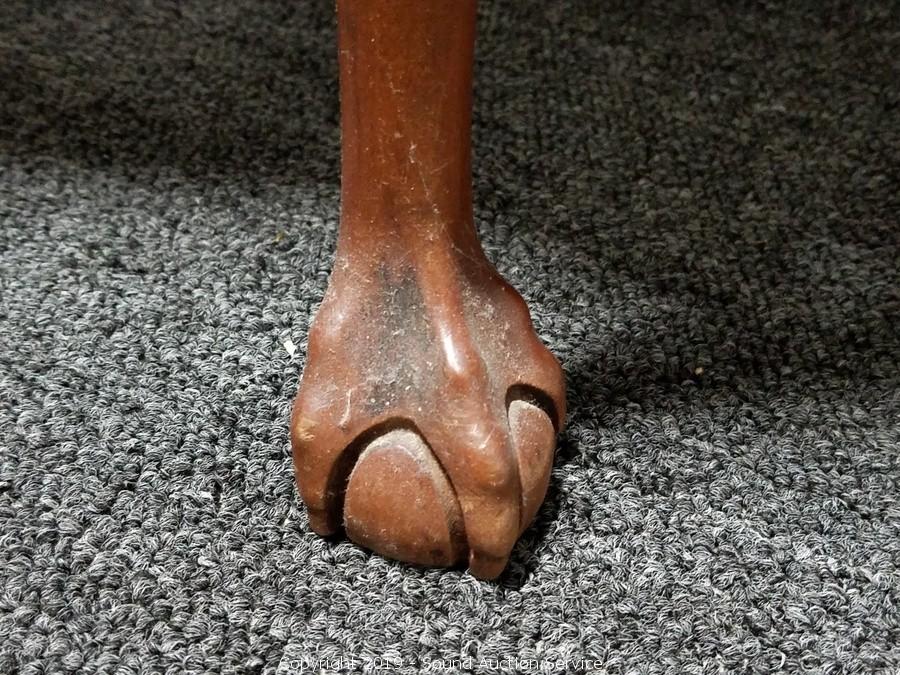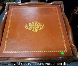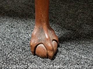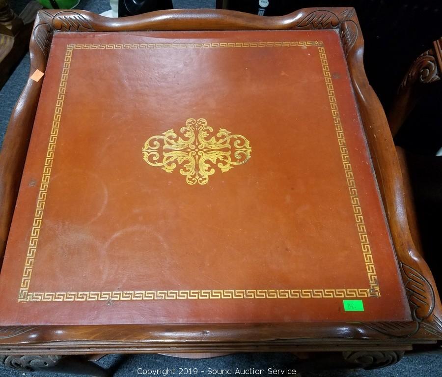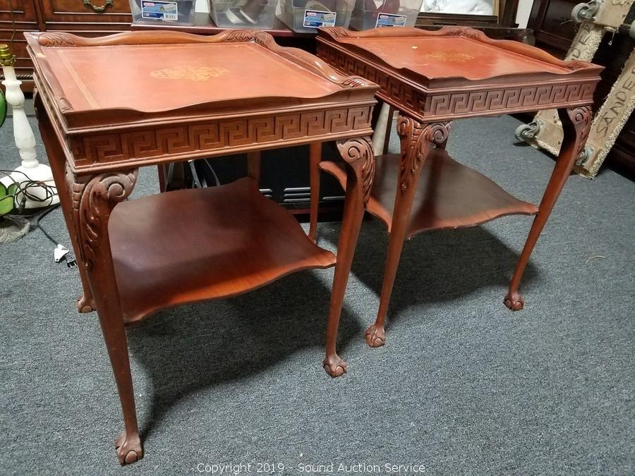 Lot #0292: 2 Vtg. Ornate Leather Top 2-Tier Claw Foot Tables