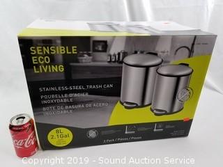 Lot #0322: 2pk Stainless Steel Pedal Actuated Trash Cans