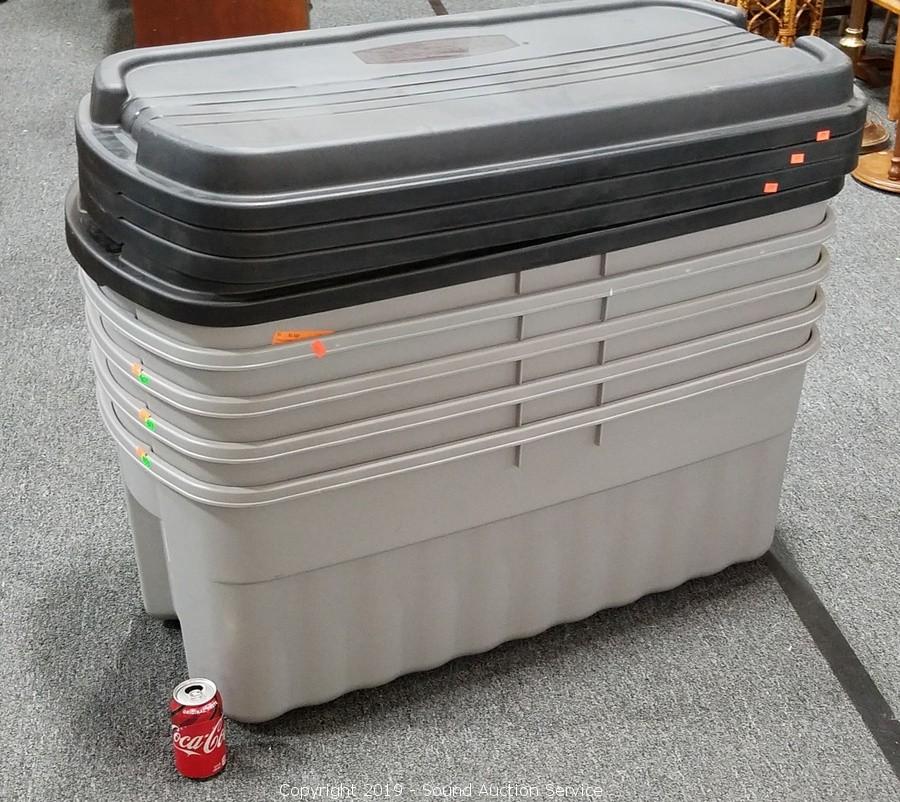 Item Description: One tote is missing a lid and is cracked on the bottom. Approx. 42.5" x 21" x 18.25".