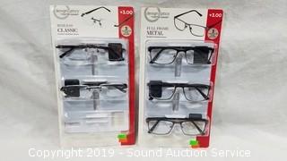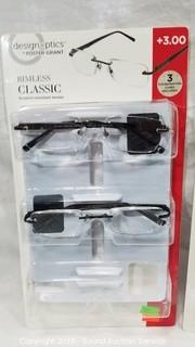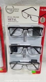 Lot #0372: 5 Pairs Design Optics +2.0 Reading Glasses